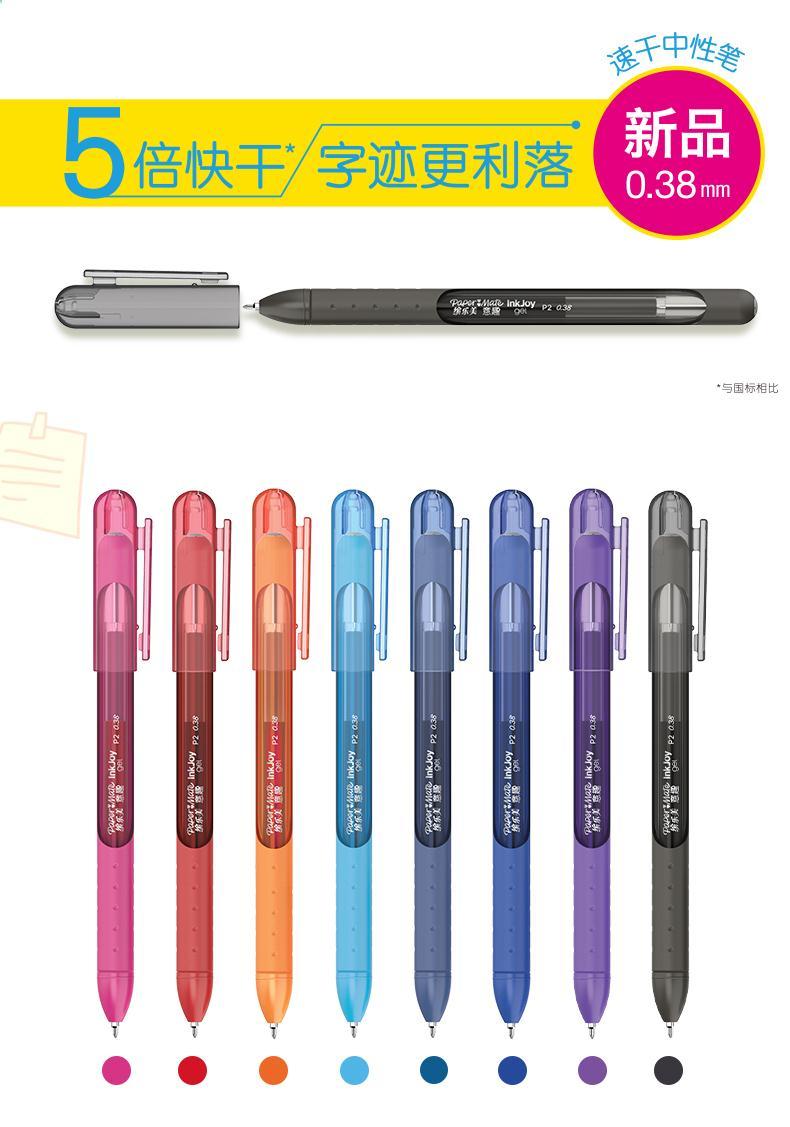 papermate缤乐美意趣彩色中性笔0.38mm速干水笔黑色蓝色糖果色P2退货包运费
