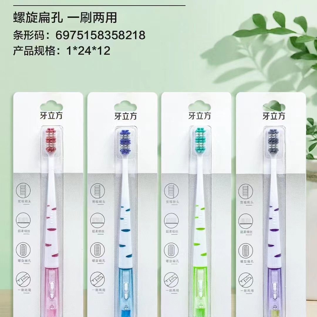 • 牙立方821双面卡螺旋扁孔带刷杯底牙刷
