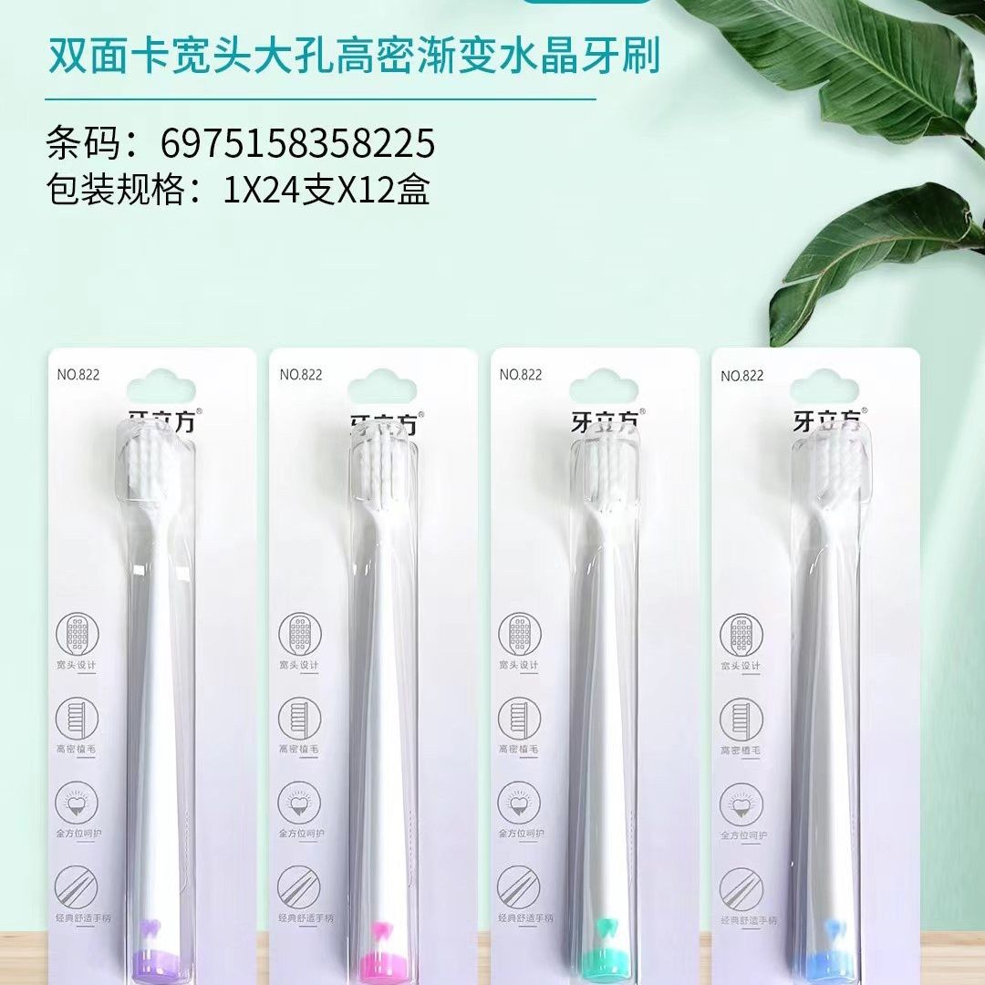 • 牙立方822双面卡宽头大孔高密渐变水晶牙刷