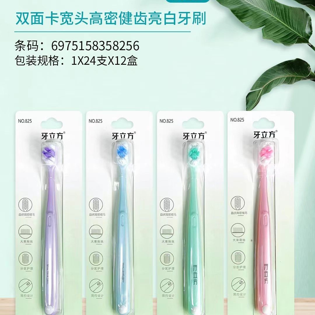 牙立方825双面卡宽头高密健齿亮白牙刷