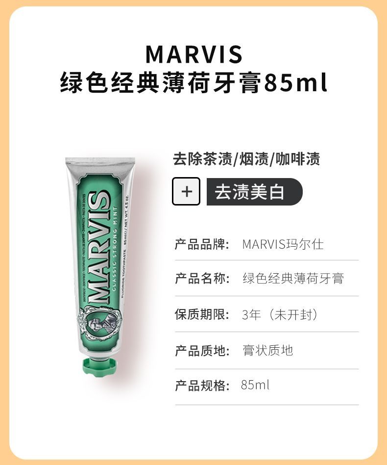 玛尔仕MARVIS 强化亮白薄荷(烟渍清洁)牙膏