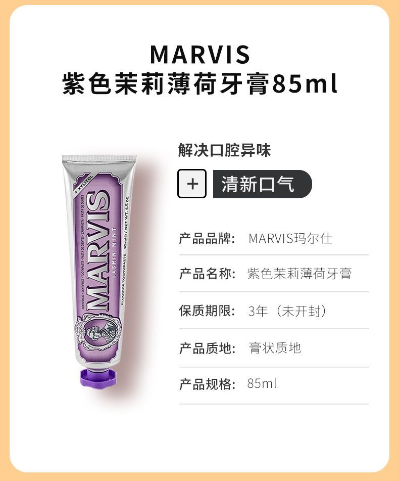 马尔仕MARVIS 茉莉薄荷牙膏85ml(紫色)