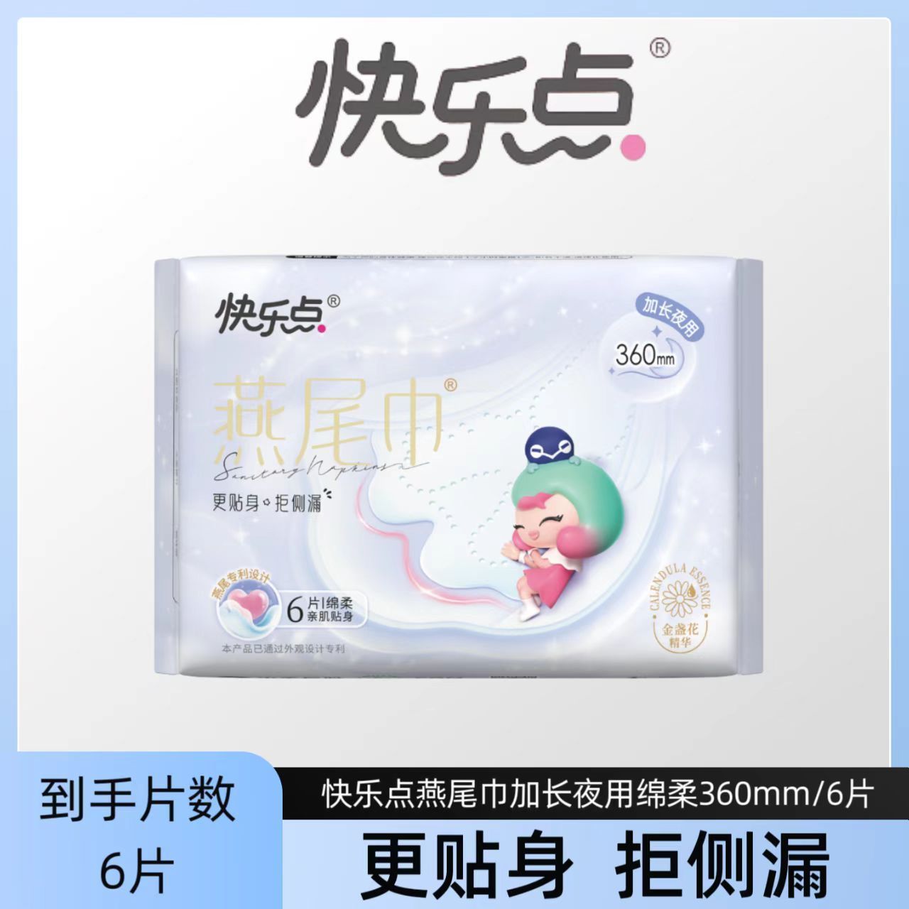 快乐点燕尾巾系列6片加长夜用绵柔