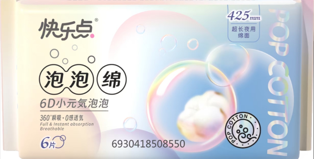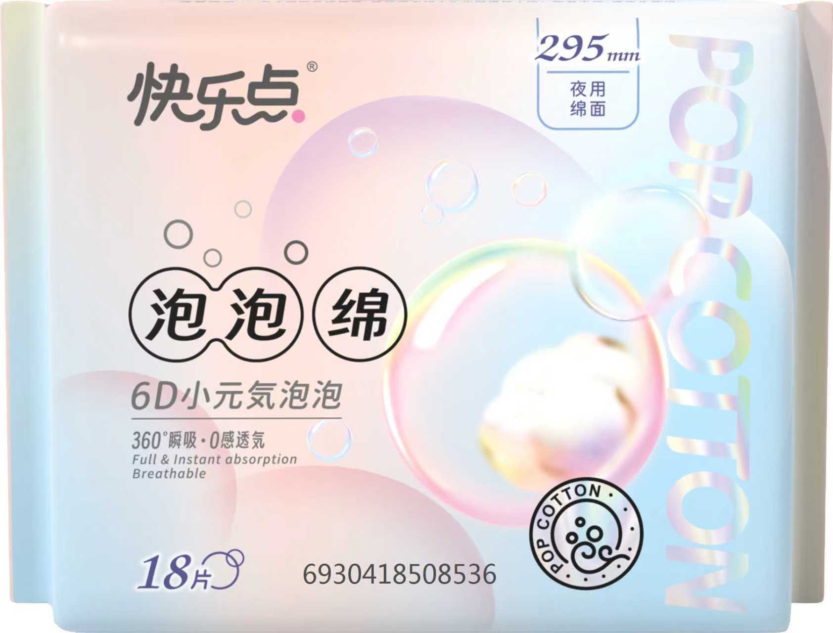 快乐点泡泡绵系列6片超长夜用绵面