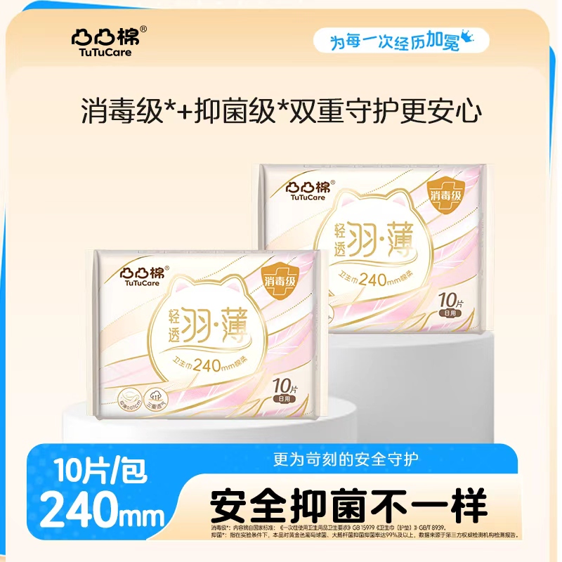 舒莱凸凸棉轻透羽薄日用10片240卫生巾