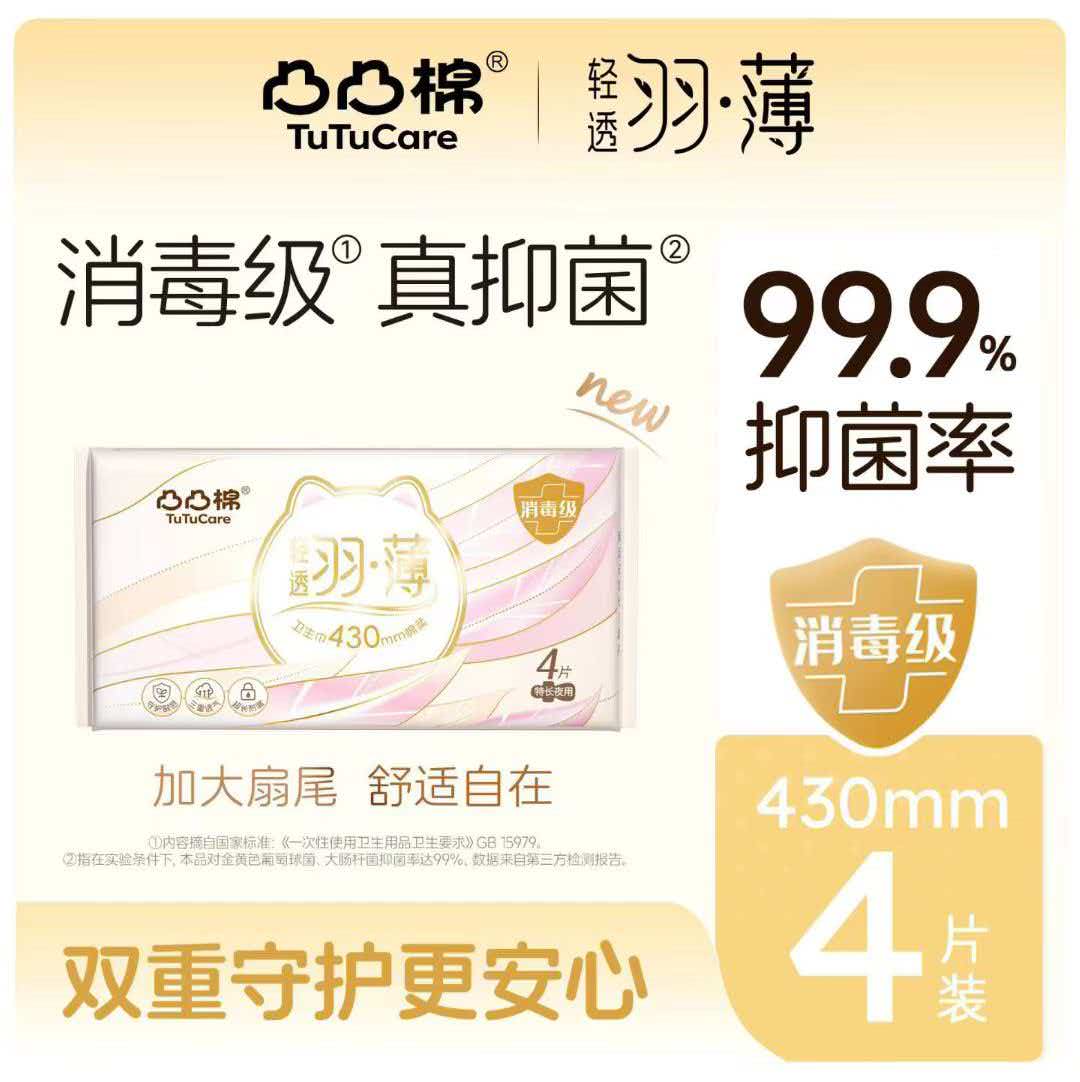 舒莱凸凸棉干爽透气4片430超长夜用棉柔卫生巾